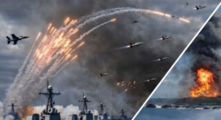 According to circulating reports, a U.S. destroyer operating in strategic waters came under a coordinated barrage of 36 missiles in what analysts describe as a calculated saturation attack.