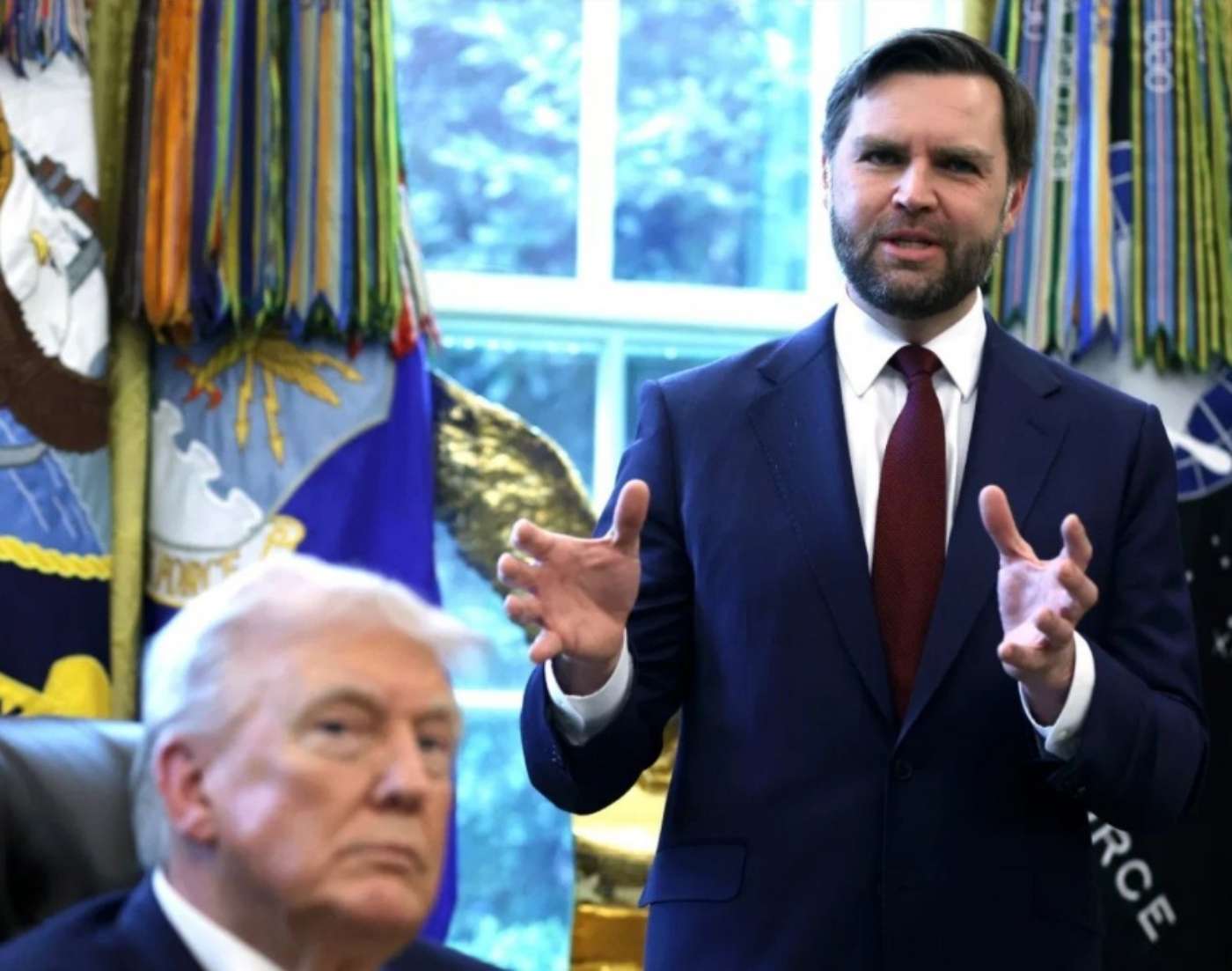“He gets a little bit tough on occasion; we gotta slow him down on occasion,” Trump said about Vance.